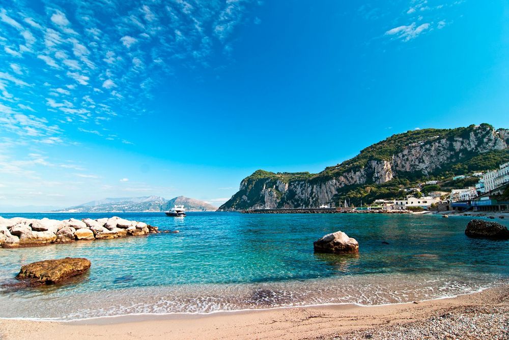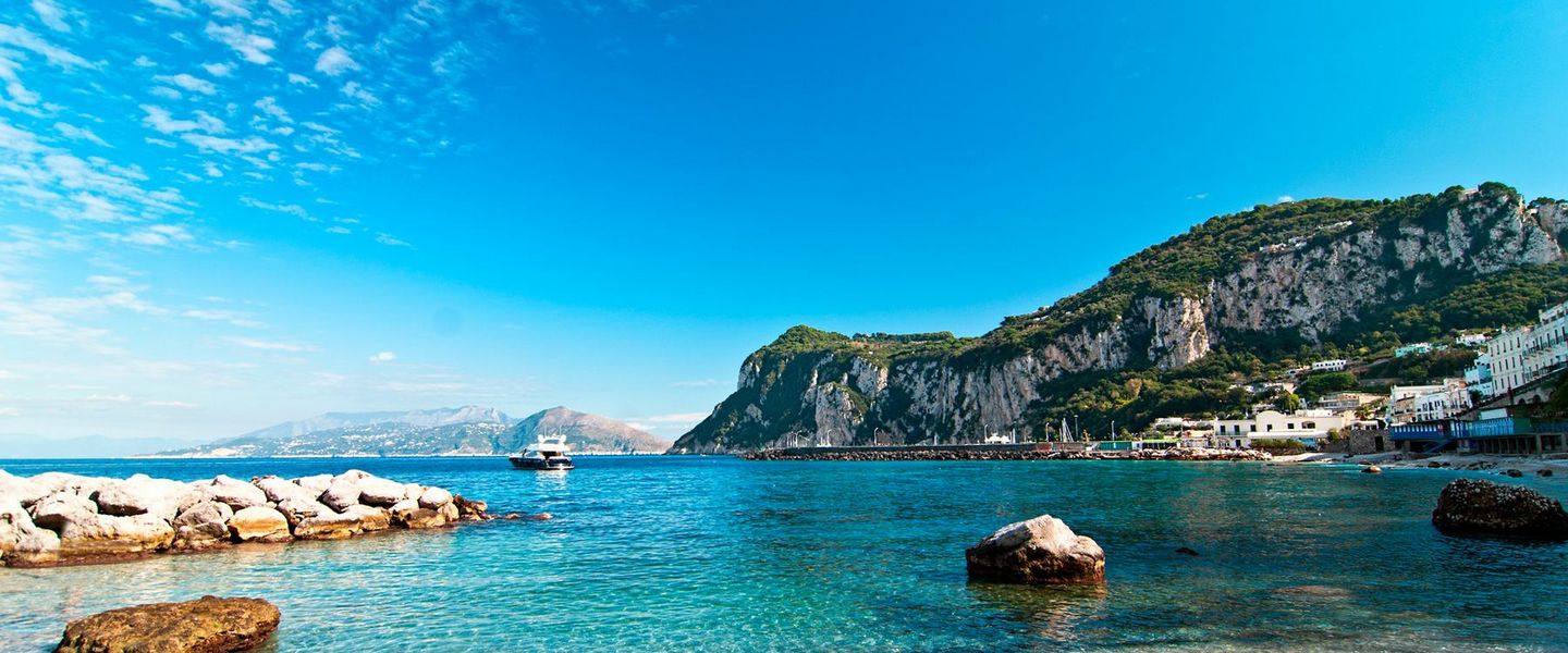 Capri liegt im Tyrrhenischen Meer, etwa 5 Kilometer von der Küste Kampaniens entfernt und ist Teil der Metropolitanstadt Neapel. Die Insel hat eine Fläche von etwa 10,4 Quadratkilometern und ist von steilen Klippen und malerischen Buchten umgeben. Capri ist gut erreichbar mit Fähren und Schnellbooten, die regelmäßig von Neapel, Sorrent und anderen Küstenorten ablegen. Die zentrale Lage von Capri im Golf von Neapel macht sie zu einem idealen Ziel für Tagesausflüge und längere Aufenthalte, um die Schönheit der umliegenden Region zu erkunden. Die Kombination aus beeindruckender Landschaft, reicher Geschichte und der Möglichkeit, die italienische Kultur zu genießen, macht Capri zu einem unverzichtbaren Ziel für Reisende, die das Beste der italienischen Riviera erleben möchten.