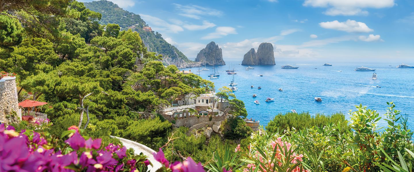 Die Halbinsel Sorrent mit der Amalfiküste und der Insel Capri bildet eine Sinfonie von malerischen Landschaften, traumhaften Buchten, dem Duft von Zitronen, eingebettet in eine einzigartige Vegetation.
