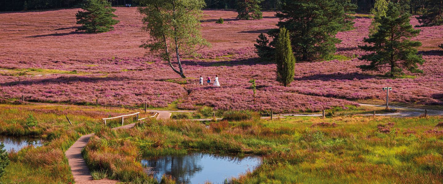 Heute starten Sie Ihre romantische Radtour durch die bezaubernde Lüneburger Heide. Bis zum Beginn des 19. Jahrhunderts erstreckten sich weite Teile Norddeutschlands über weiträumige Heideflächen, von denen nur noch die Lüneburger Heide erhalten geblieben ist. Auf Ihrer Radtour werden Sie von der Schönheit der Heidepflanzen begeistert sein, die den Boden vielerorts bedecken und sich harmonisch mit Kiefernwäldern, Wiesen und Feldern abwechseln. Halten Sie Ausschau nach den typischen Heidschnucken, die friedlich grasen und die Landschaft bereichern. Die charmanten kleinen Städte und Dörfer, die Sie passieren, fügen sich perfekt in das Gesamtbild ein und haben zahlreiche Dichter und Maler inspiriert.