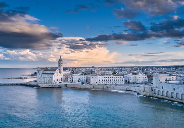 Trani ist eine malerische Küstenstadt in Italien, die in der Region Apulien liegt. Sie befindet sich an der Adriaküste, etwa 40 Kilometer nordwestlich von Bari. Trani ist bekannt für ihren beeindruckenden Hafen, die wunderschöne Altstadt und die historische Kathedrale San Nicola Pellegrino, die direkt am Meer liegt. Die Stadt ist berühmt für ihre reiche Geschichte, die bis in die Antike zurückreicht, und war im Mittelalter ein wichtiges Handelszentrum. Trani hat sich im Laufe der Jahrhunderte zu einem kulturellen und touristischen Ziel entwickelt, das Besucher mit seiner charmanten Atmosphäre und seiner historischen Architektur anzieht.