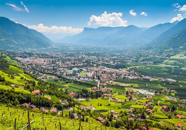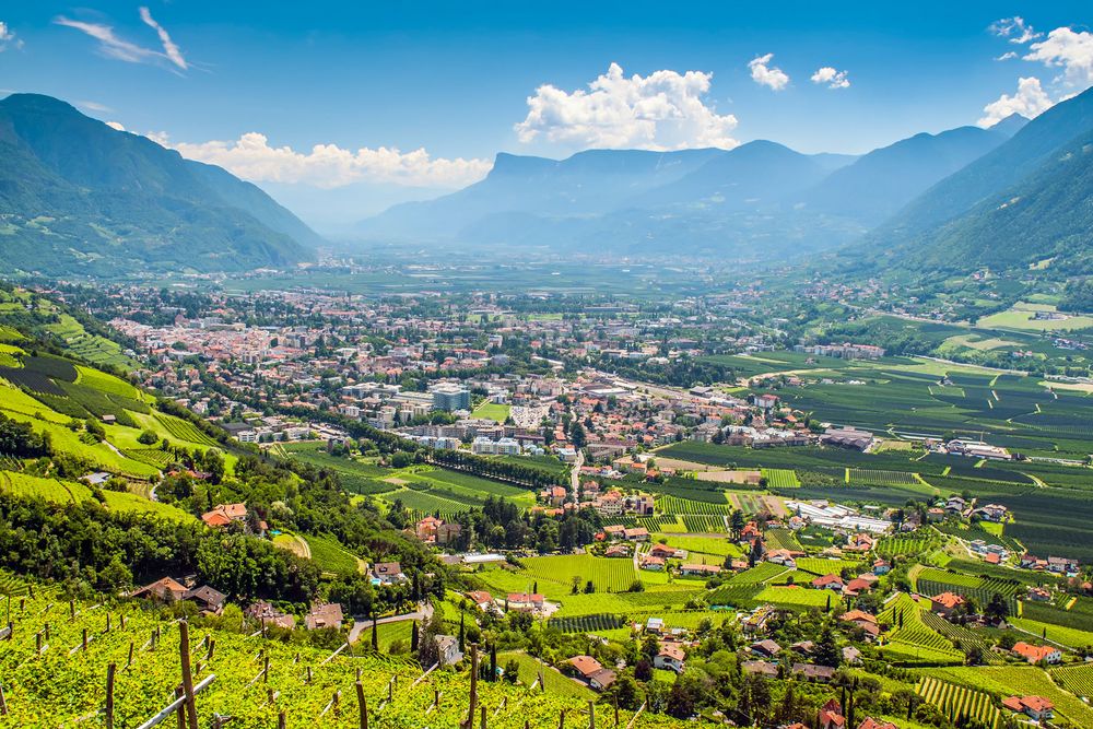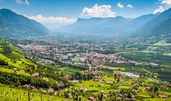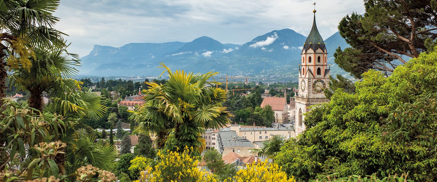 Meran ist eine malerische Stadt in Italien, die sich in der Region Trentino-Südtirol befindet. Sie liegt im oberen Etschtal, umgeben von beeindruckenden Bergen und ist bekannt für ihr mildes Klima, das es zu einem beliebten Kurort macht. Meran ist berühmt für seine Thermalquellen und die wunderschönen Gärten von Schloss Trauttmansdorff, die eine Vielzahl von Pflanzen aus verschiedenen Klimazonen beherbergen. Die Stadt hat eine reiche Geschichte, die bis in die römische Zeit zurückreicht, und war im 19. Jahrhundert ein beliebter Rückzugsort für die europäische Aristokratie. Heute zieht Meran Touristen an, die die Kombination aus Natur, Kultur und Wellness genießen möchten.