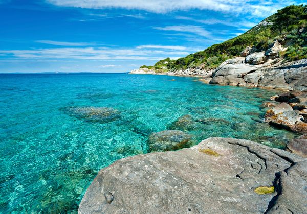 Heute starten Sie Ihre Wanderung in Viticcio, einer kleinen Felsenbucht, die für das intensive Türkis ihres Wassers bekannt ist. Der Weg führt Sie durch Steineichenwälder und dichte Macchia bis zu den wunderschönen Buchten von Scaglieri und Biodola.